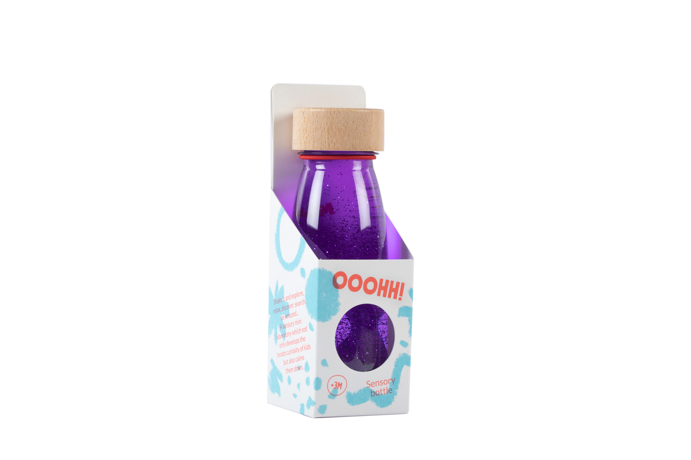 Pohrajte sa s farbami a svetlami: plávajúca fľaštička s fialovými odtieňmi ponúka hypnotizujúci tanec bubliniek, ktorý upokojí myseľ a navodí pokoj. Môžete ju použiť aj na svetelnom stole alebo kombinovať s inými farbami a vytvoriť tak pútavú zmyslovú aktivitu pre deti.